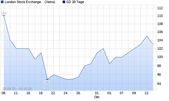 Mit dem Rücksetzer auf 102,00 EUR hat die LSE Group-Aktie am 14.10.2025 die 38-Tage-Linie nach unten gekreuzt.Die LSE Group-Aktie befindet sich seit dem 10.06.2025 im langfristigen Abwärtstrend ...weiterlesen