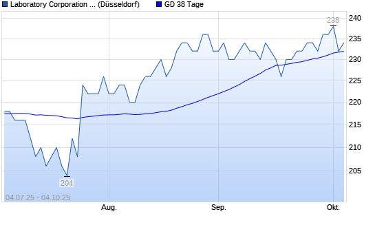 Mit dem Anstieg auf 236,00 EUR hat die Laboratory Corporation of America-Aktie am 03.10.2025 die 38-Tage-Linie nach oben gekreuzt.Die Laboratory Corporation of America-Aktie befindet sich seit ...weiterlesen