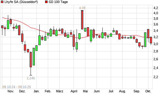 Mit dem Rücksetzer auf 3,07 EUR hat die Lhyfe-Aktie am 08.10.2025 die 100-Tage-Linie nach unten gekreuzt.Die Lhyfe-Aktie befindet sich seit dem 30.09.2025 im langfristigen Abwärtstrend ...weiterlesen