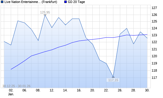 Mit dem Rücksetzer auf 122,60 EUR hat die Live Nation Entertainment-Aktie am 30.01.2026 die 20-Tage-Linie nach unten gekreuzt.Die Live Nation Entertainment-Aktie befindet sich seit dem ...weiterlesen
