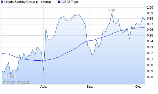 Mit dem Anstieg auf 0,98 EUR hat die Lloyds-Aktie am 06.10.2025 die 38-Tage-Linie nach oben gekreuzt.Die Lloyds-Aktie befindet sich seit dem 16.01.2025 im langfristigen Aufwärtstrend und hat ...weiterlesen