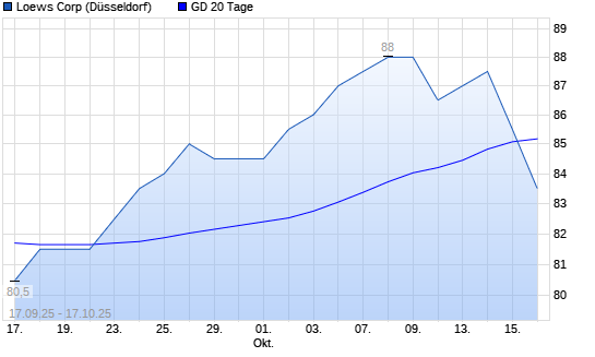 Mit dem Rücksetzer auf 85,50 EUR hat die Loews-Aktie am 16.10.2025 die 20-Tage-Linie nach unten gekreuzt.Die Loews-Aktie befindet sich seit dem 05.08.2025 im langfristigen Aufwärtstrend ...weiterlesen