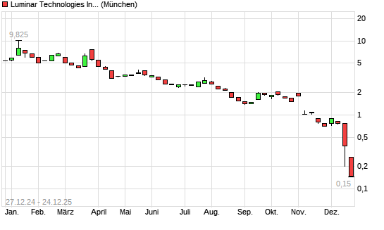Mit dem Rücksetzer auf 0,14 EUR hat die Luminar Technologies-Aktie (ISIN US5504243032) am 23.12.2025 ein neues All-Time-Low erreicht und damit den Kurs vom 18.12.2025 eingestellt.Der Abstand ...weiterlesen