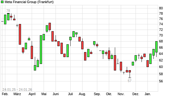 Mit dem Anstieg auf 72,00 EUR hat die META FINANCIAL GROUP-Aktie (ISIN US59100U1088) am 23.01.2026 ein neues 6-Monats-Hoch erreicht und damit den Kurs vom 28.07.2025 eingestellt.Die META FINANCIAL ...weiterlesen