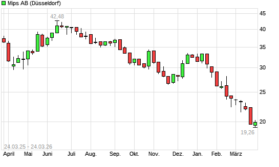 Mit dem Rücksetzer auf 19,24 EUR hat die MIPS Registered-Aktie (ISIN SE0009216278) am 23.03.2026 ein neues 5-Jahres-Tief erreicht und damit den Kurs vom 20.03.2026 ...weiterlesen