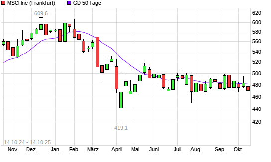 Mit dem Rücksetzer auf 473,60 EUR hat die MSCI Inc.-Aktie am 13.10.2025 die 50-Tage-Linie nach unten gekreuzt.Die MSCI Inc.-Aktie befindet sich seit dem 05.03.2025 im langfristigen Abwärtstrend ...weiterlesen