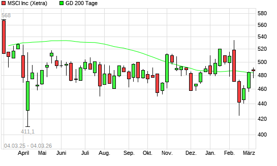 Mit dem Anstieg auf 488,60 EUR hat die MSCI Inc.-Aktie am 03.03.2026 die 200-Tage-Linie nach oben gekreuzt.Die MSCI Inc.-Aktie befand sich seit dem 27.02.2026 im langfristigen ...weiterlesen