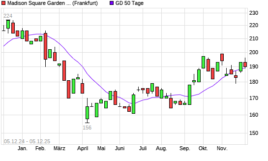 Mit dem Anstieg auf 190,00 EUR hat die Madison Square Garden Sports A-Aktie am 04.12.2025 die 50-Tage-Linie nach oben gekreuzt.Die Madison Square Garden Sports A-Aktie befindet sich seit dem ...weiterlesen