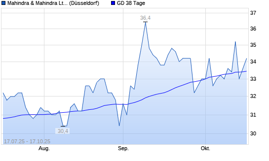 Mit dem Anstieg auf 34,00 EUR hat die Mahindra & Mahindra GDR-Aktie am 16.10.2025 die 38-Tage-Linie nach oben gekreuzt.Die Mahindra & Mahindra GDR-Aktie befindet sich seit dem 04.09.2025 ...weiterlesen