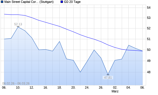Mit dem Anstieg auf 50,60 EUR hat die Main Street Capital Corporation Common Stock-Aktie am 05.03.2026 die 20-Tage-Linie nach oben gekreuzt.Die Main Street Capital Corporation ...weiterlesen