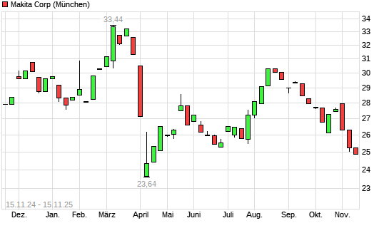 Mit dem Rücksetzer auf 24,34 EUR hat die Makita Corp-Aktie (ISIN JP3862400003) am 14.11.2025 ein neues 6-Monats-Tief erreicht und damit den Kurs vom 12.11.2025 eingestellt.Die Makita Corp-Aktie ...weiterlesen