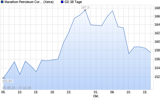 Mit dem Rücksetzer auf 157,42 EUR hat die Marathon Petroleum-Aktie am 16.10.2025 die 38-Tage-Linie nach unten gekreuzt.Die Marathon Petroleum-Aktie befindet sich seit dem 18.08.2025 im ...weiterlesen
