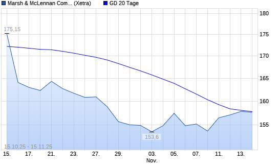 Mit dem Anstieg auf 157,80 EUR hat die Marsh & McLennan Companies-Aktie am 14.11.2025 die 20-Tage-Linie nach oben gekreuzt.Die Marsh & McLennan Companies-Aktie befindet sich seit dem 15.04.2025 ...weiterlesen