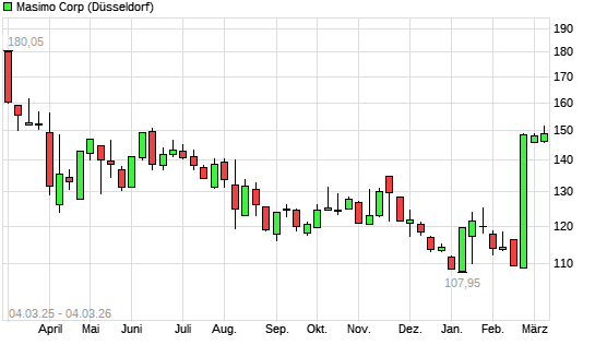 Mit dem Anstieg auf 150,55 EUR hat die Masimo-Aktie (ISIN US5747951003) am 03.03.2026 ein neues 6-Monats-Hoch erreicht und damit den Kurs vom 02.03.2026 eingestellt.Die ...weiterlesen