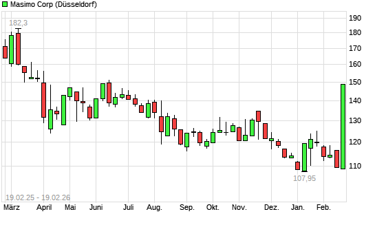 Mit dem Anstieg auf 148,65 EUR hat die Masimo-Aktie (ISIN US5747951003) am 18.02.2026 ein neues 6-Monats-Hoch erreicht und damit den Kurs vom 17.02.2026 eingestellt.Die ...weiterlesen
