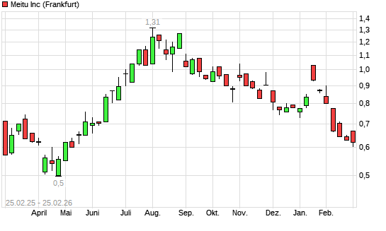 Mit dem Rücksetzer auf 0,61 EUR hat die Meitu-Aktie (ISIN KYG5966D1051) am 24.02.2026 ein neues 6-Monats-Tief erreicht und damit den Kurs vom 20.02.2026 eingestellt.Die ...weiterlesen