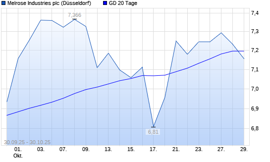 Mit dem Rücksetzer auf 7,20 EUR hat die Melrose Industries-Aktie am 29.10.2025 die 20-Tage-Linie nach unten gekreuzt.Die Melrose Industries-Aktie befindet sich seit dem 04.08.2025 im langfristigen ...weiterlesen