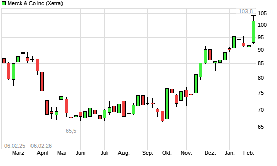 Mit dem Anstieg auf 102,60 EUR hat die Merck & Co-Aktie (ISIN US58933Y1055) am 05.02.2026 ein neues 12-Monats-Hoch erreicht und damit den Kurs vom 04.02.2026 eingestellt.Die Merck & Co-Aktie ...weiterlesen