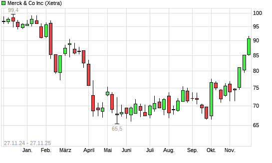 Mit dem Anstieg auf 91,10 EUR hat die Merck & Co-Aktie (ISIN US58933Y1055) am 26.11.2025 ein neues 6-Monats-Hoch erreicht und damit den Kurs vom 25.11.2025 eingestellt.Die Merck & Co-Aktie befindet ...weiterlesen
