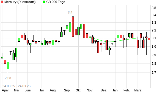 Mit dem Rücksetzer auf 3,12 EUR hat die Mercury-Aktie am 23.03.2026 die 200-Tage-Linie nach unten gekreuzt.Die Mercury-Aktie befand sich seit dem 16.03.2026 im ...weiterlesen