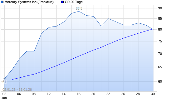 Mit dem Rücksetzer auf 80,00 EUR hat die Mercury Systems-Aktie am 30.01.2026 die 20-Tage-Linie nach unten gekreuzt.Der Abstand zur 200-Tage-Linie beträgt aktuell +40,99%. ##trendBox## Die ...weiterlesen