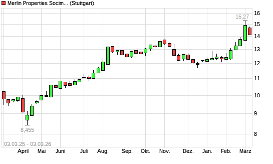 Mit dem Anstieg auf 14,62 EUR hat die Merlin Properties Socimi-Aktie (ISIN ES0105025003) am 02.03.2026 ein neues All-Time-High erreicht und damit den Kurs vom 27.02.2026 ...weiterlesen
