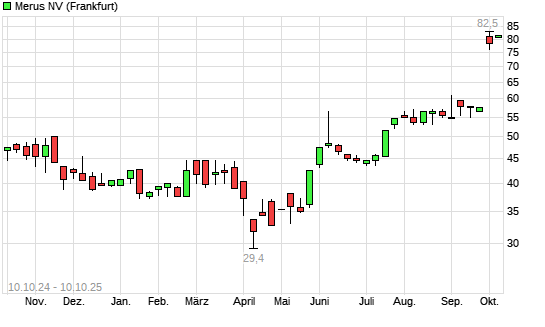 Mit dem Anstieg auf 81,50 EUR hat die Merus-Aktie (ISIN NL0011606264) am 09.10.2025 ein neues All-Time-High erreicht und damit den Kurs vom 08.10.2025 eingestellt.Der Abstand zur 200-Tage-Linie ...weiterlesen