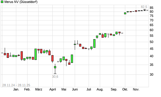 Mit dem Anstieg auf 82,00 EUR hat die Merus-Aktie (ISIN NL0011606264) am 27.11.2025 ein neues All-Time-High erreicht und damit den Kurs vom 24.11.2025 eingestellt.Der Abstand zur 200-Tage-Linie ...weiterlesen