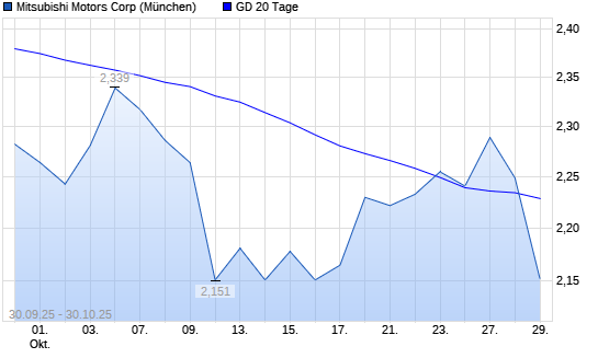 Mit dem Rücksetzer auf 2,17 EUR hat die Mitsubishi Motors-Aktie am 29.10.2025 die 20-Tage-Linie nach unten gekreuzt.Die Mitsubishi Motors-Aktie befindet sich seit dem 02.06.2025 im langfristigen ...weiterlesen
