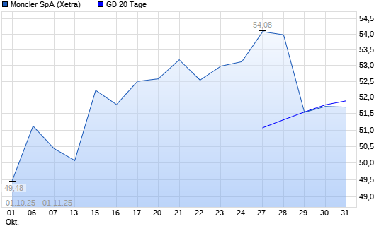 Mit dem Anstieg auf 52,46 EUR hat die Moncler-Aktie am 03.11.2025 die 20-Tage-Linie nach oben gekreuzt.Die Moncler-Aktie befindet sich seit dem 04.06.2025 im langfristigen Abwärtstrend und hat ...weiterlesen