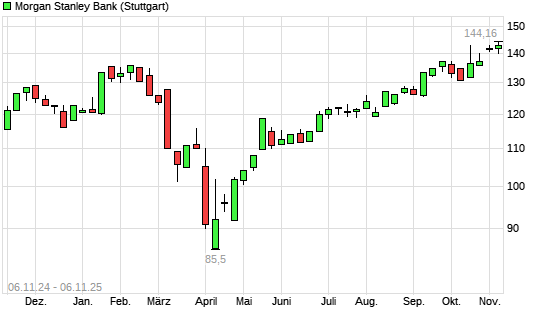 Mit dem Anstieg auf 143,78 EUR hat die Morgan Stanley-Aktie (ISIN US6174464486) am 05.11.2025 ein neues All-Time-High erreicht und damit den Kurs vom 04.11.2025 eingestellt.Die Morgan Stanley-Aktie ...weiterlesen