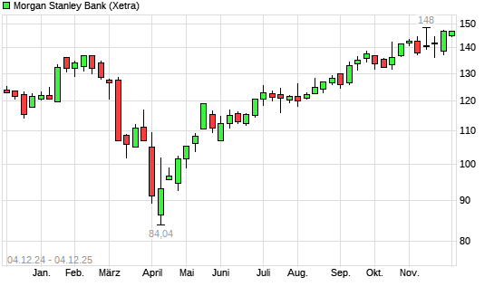 Mit dem Anstieg auf 148,68 EUR hat die Morgan Stanley-Aktie (ISIN US6174464486) am 03.12.2025 ein neues All-Time-High erreicht und damit den Kurs vom 12.11.2025 eingestellt.Die Morgan Stanley-Aktie ...weiterlesen