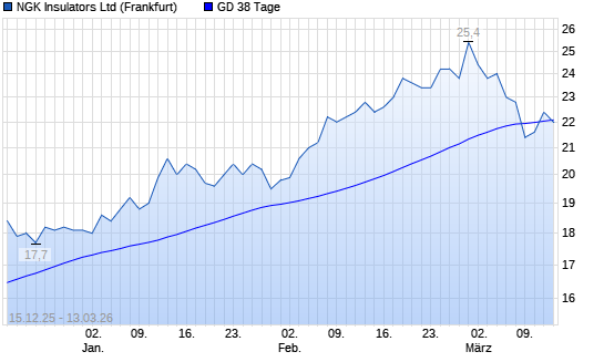 Mit dem Rücksetzer auf 22,00 EUR hat die NGK Insulators-Aktie am 12.03.2026 die 38-Tage-Linie nach unten gekreuzt.Die NGK Insulators-Aktie befindet sich seit dem 01.08.2025 ...weiterlesen