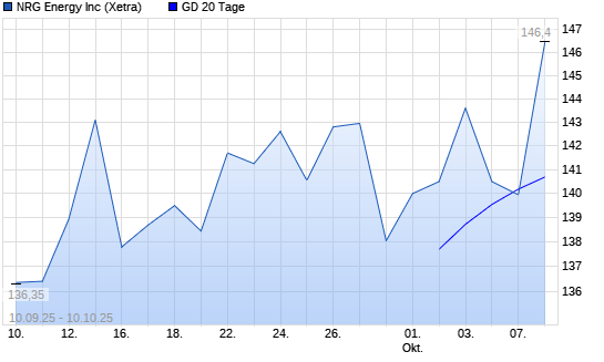 Mit dem Anstieg auf 141,45 EUR hat die NRG Energy-Aktie am 09.10.2025 die 20-Tage-Linie nach oben gekreuzt.Die NRG Energy-Aktie befindet sich seit dem 23.04.2025 im langfristigen Aufwärtstrend ...weiterlesen