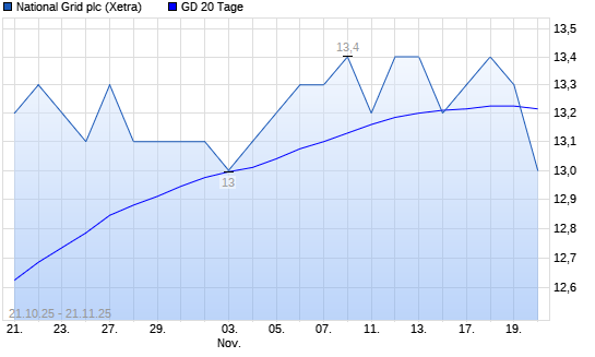 Mit dem Rücksetzer auf 13,00 EUR hat die National Grid-Aktie am 20.11.2025 die 20-Tage-Linie nach unten gekreuzt.Die National Grid-Aktie befindet sich seit dem 01.10.2025 im langfristigen ...weiterlesen