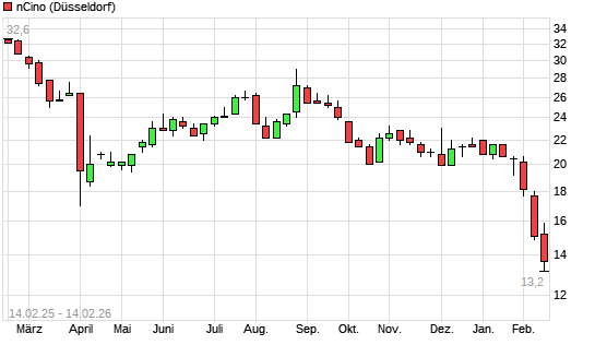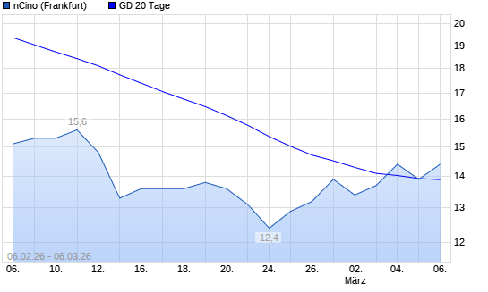 Mit dem Rücksetzer auf 13,90 EUR hat die Ncino-Aktie am 05.03.2026 die 20-Tage-Linie nach unten gekreuzt.Die Ncino-Aktie befindet sich seit dem 03.09.2025 im ...weiterlesen