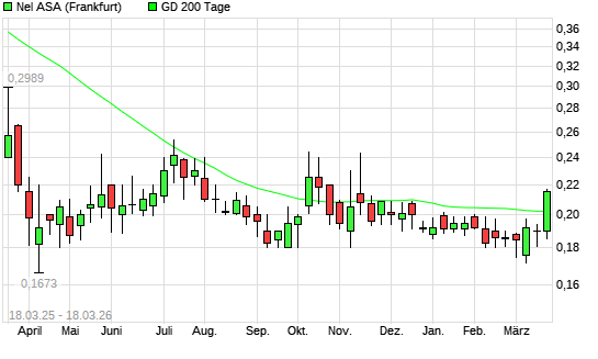 Mit dem Anstieg auf 0,21 EUR hat die Nel ASA-Aktie am 17.03.2026 die 200-Tage-Linie nach oben gekreuzt.Die Nel ASA-Aktie befand sich seit dem 01.12.2025 im langfristigen Abwärtstrend ...weiterlesen