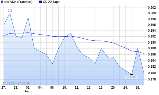 Mit dem Rücksetzer auf 0,18 EUR hat die Nel ASA-Aktie am 27.02.2026 die 20-Tage-Linie nach unten gekreuzt.Die Nel ASA-Aktie befindet sich seit dem 01.12.2025 im ...weiterlesen
