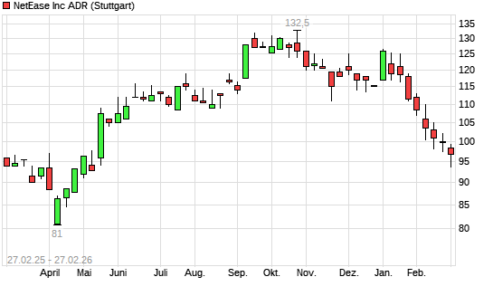 Mit dem Rücksetzer auf 94,00 EUR hat die NetEase-Aktie (ISIN US64110W1027) am 26.02.2026 ein neues 6-Monats-Tief erreicht und damit den Kurs vom 25.02.2026 ...weiterlesen