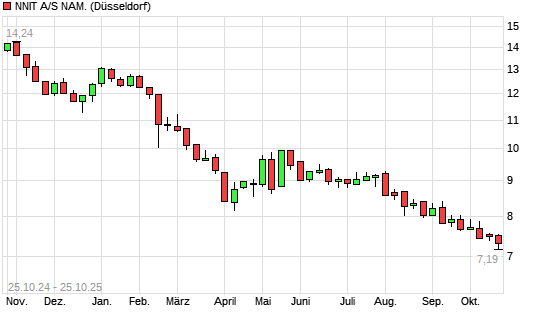 Mit dem Rücksetzer auf 7,19 EUR hat die Nnit Ord Shs-Aktie (ISIN DK0060580512) am 24.10.2025 ein neues 12-Monats-Tief erreicht und damit den Kurs vom 22.10.2025 eingestellt.Die Nnit Ord ...weiterlesen