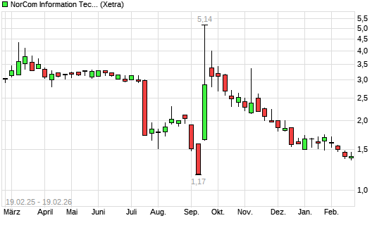 Mit dem Rücksetzer auf 1,31 EUR hat die NorCom Information Technology-Aktie (ISIN DE000A12UP37) am 18.02.2026 ein neues 10-Jahres-Tief erreicht und damit den Kurs vom ...weiterlesen