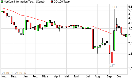 Mit dem Anstieg auf 2,48 EUR hat die NorCom Information Technology-Aktie am 23.10.2025 die 100-Tage-Linie nach oben gekreuzt.Die NorCom Information Technology-Aktie befindet sich seit dem 07.10.2025 ...weiterlesen