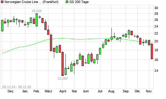 Mit dem Rücksetzer auf 16,46 EUR hat die Norwegian Cruise Line-Aktie am 04.11.2025 die 200-Tage-Linie nach unten gekreuzt.Die Norwegian Cruise Line-Aktie befand sich seit dem 03.11.2025 ...weiterlesen