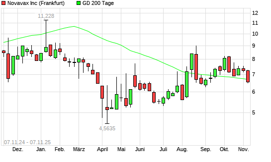 Mit dem Rücksetzer auf 6,59 EUR hat die Novavax-Aktie am 06.11.2025 die 200-Tage-Linie nach unten gekreuzt.Die Novavax-Aktie befand sich seit dem 05.11.2025 im langfristigen Aufwärtstrend ...weiterlesen
