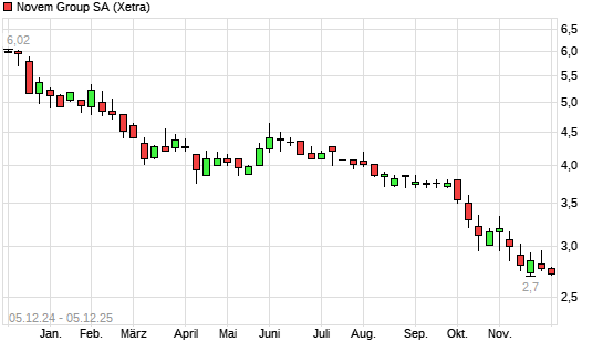Mit dem Rücksetzer auf 2,64 EUR hat die Novem Group-Aktie (ISIN LU2356314745) am 04.12.2025 ein neues All-Time-Low erreicht und damit den Kurs vom 18.11.2025 eingestellt.Die Novem Group-Aktie ...weiterlesen