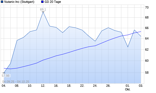 Mit dem Rücksetzer auf 64,32 EUR hat die Nutanix-Aktie am 03.10.2025 die 20-Tage-Linie nach unten gekreuzt.Die Nutanix-Aktie befindet sich seit dem 01.10.2025 im langfristigen Aufwärtstrend ...weiterlesen
