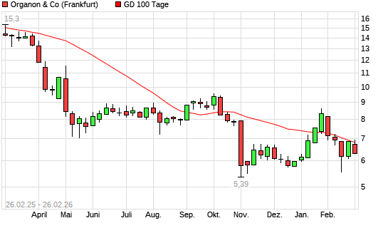 Mit dem Rücksetzer auf 6,35 EUR hat die ORGANON +-Aktie am 25.02.2026 die 100-Tage-Linie nach unten gekreuzt.Die ORGANON +-Aktie befindet sich seit dem 26.01.2026 im ...weiterlesen