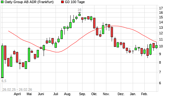 Mit dem Rücksetzer auf 10,10 EUR hat die Oatly-Aktie am 25.02.2026 die 100-Tage-Linie nach unten gekreuzt.Die Oatly-Aktie befindet sich seit dem 17.11.2025 im ...weiterlesen