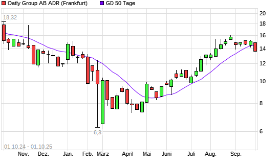 Mit dem Anstieg auf 14,60 EUR hat die Oatly-Aktie am 30.09.2025 die 50-Tage-Linie nach oben gekreuzt.Die Oatly-Aktie befindet sich seit dem 10.07.2025 im langfristigen Aufwärtstrend und hat ...weiterlesen