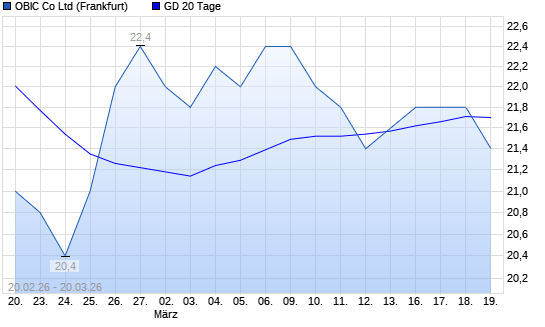 Mit dem Rücksetzer auf 21,40 EUR hat die Obic-Aktie am 19.03.2026 die 20-Tage-Linie nach unten gekreuzt.Die Obic-Aktie befindet sich seit dem 26.09.2025 im langfristigen ...weiterlesen